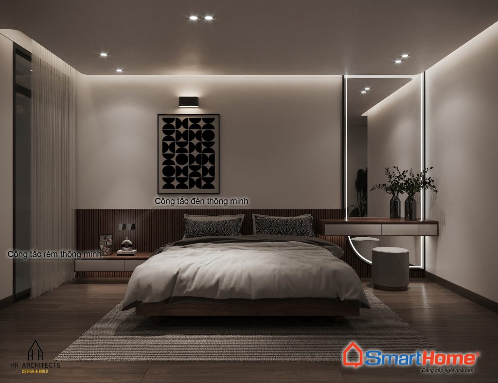 - Hệ thống chiếu sáng thông minh cho toàn bộ ngôi nhà: Điều khiển từ xa qua Smartphone, tự động bật đèn khi có người, điều khiển bằng kịch bản ngữ cảnh thông minh…vv