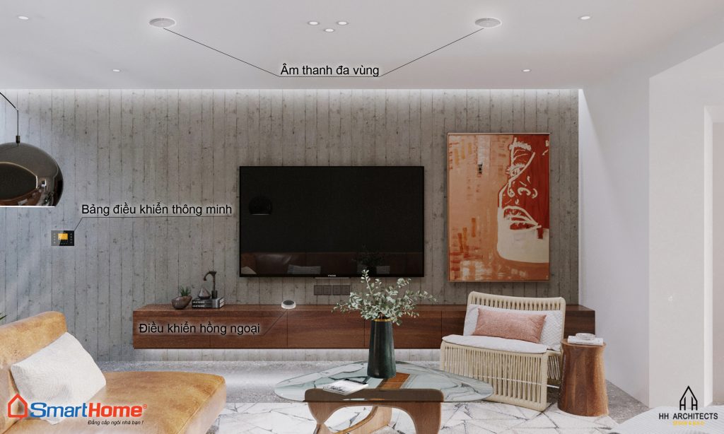 Phòng khách tích hợp hệ thống chiếu sáng thông minh